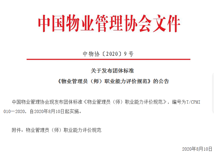 ICS 03.080.30A 16團 體 標 準T/CPMI 010—2020物業管理員(師)職業能力評價規范Vocational capability evaluation standard for property officers(Managers)2020-08-10發布 2020-08-10實施中國物業管理...