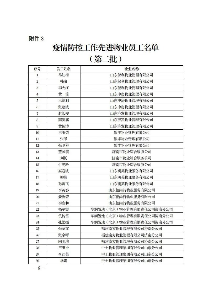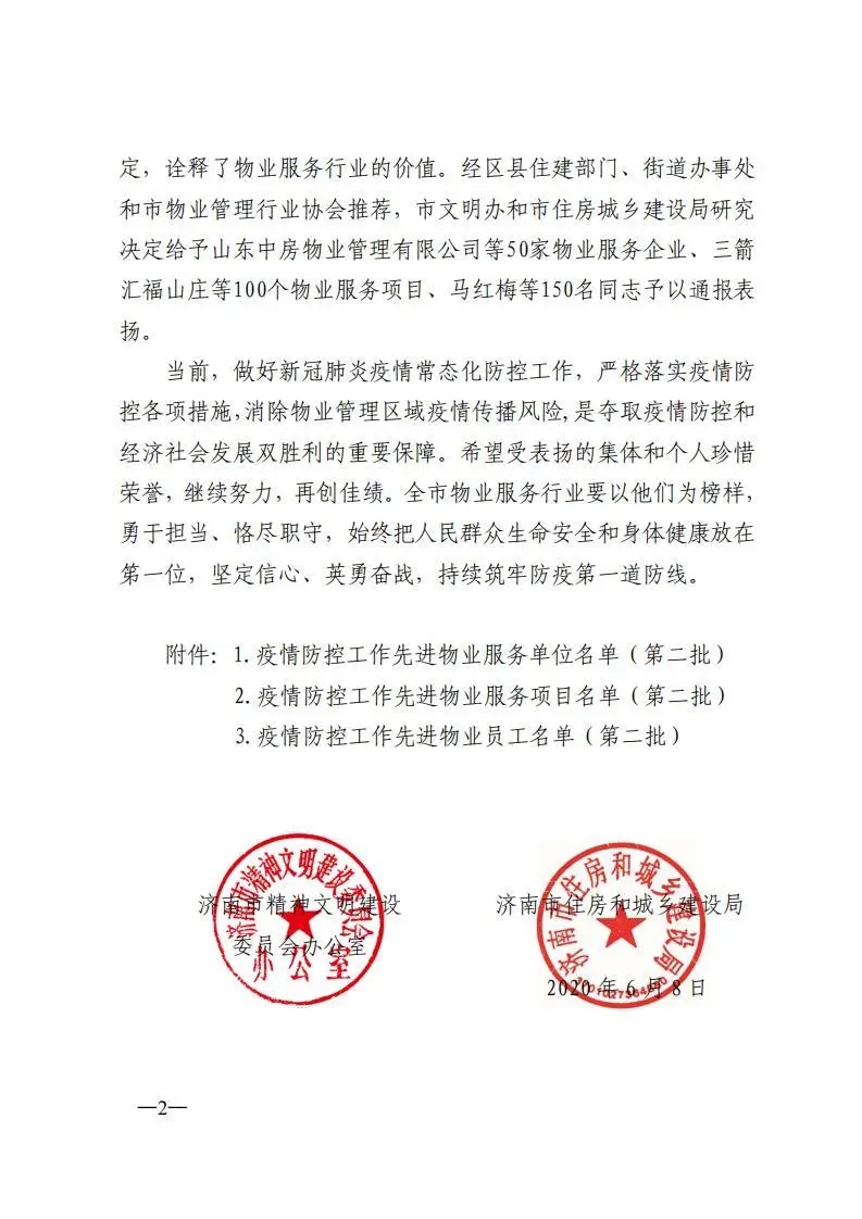 【表揚通報】濟南市精神文明建設委員會辦公室 濟南市住房和城鄉建設局關于表揚物業服務行業疫情防控工作先進集體和個人(第二批)的通報